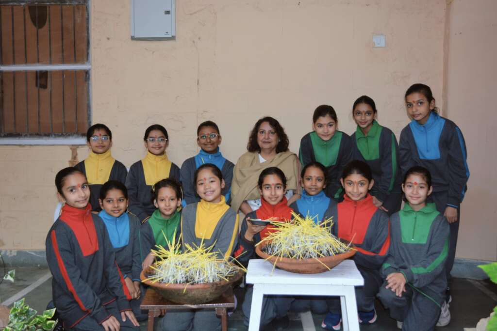 कक्षा 1 से 5 तक के विद्यार्थियों ने इस पर्व के लिए 7 जुलाई को बीज बोए थे, जो अब हरेले के रूप में उग आए थे। आज के कार्यक्रम में इन हरेलों को विधिवत काटा गया और विद्यालय की प्रधानाचार्या श्रीमती अंजना रिचर्ड्स द्वारा बच्चों के सिर पर रखकर उन्हें आशीर्वाद प्रदान किया गया। यह परंपरा समृद्धि, शुभता और प्रकृति के प्रति सम्मान का प्रतीक मानी जाती है।